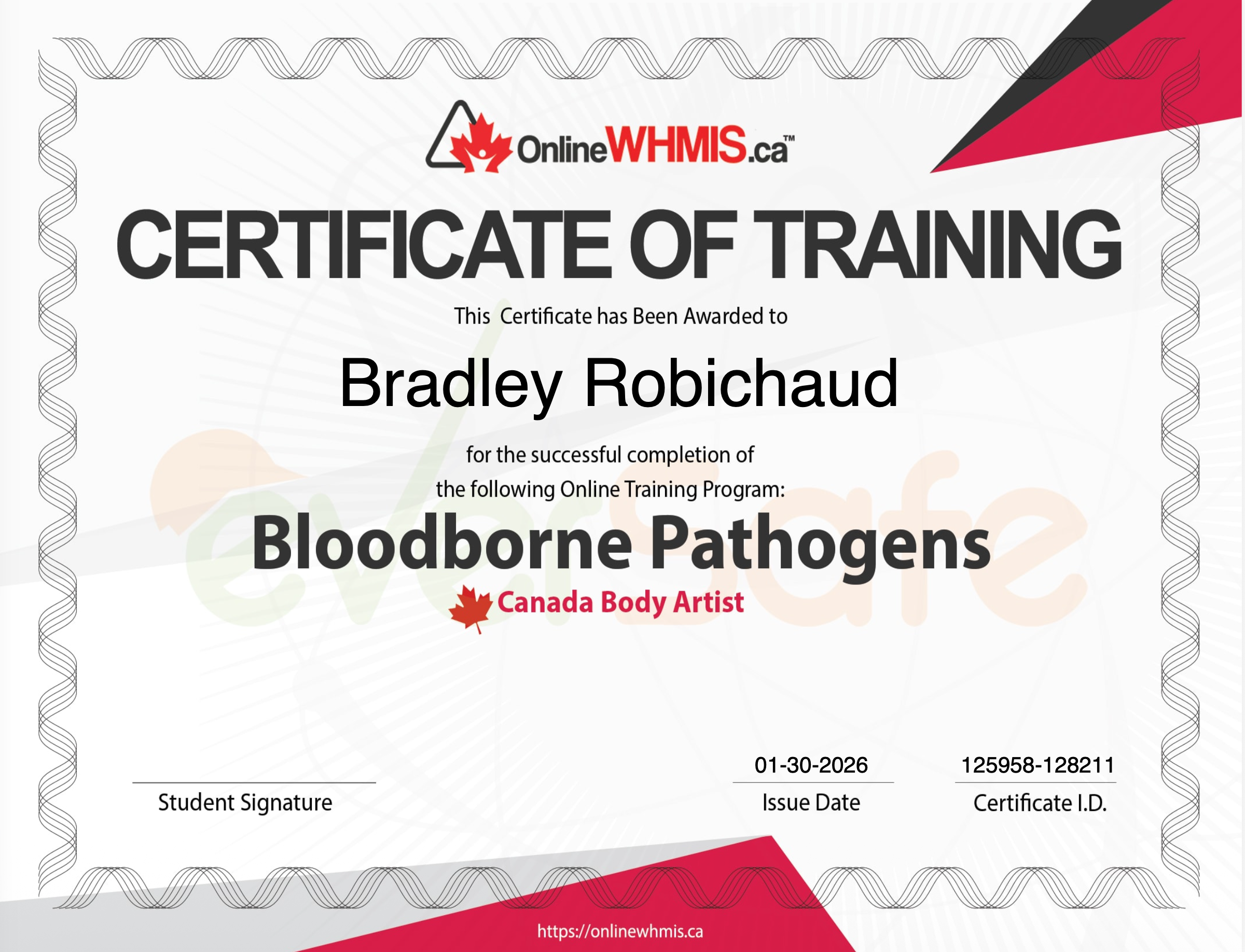 That’s what I think separates me from a lot of self-taught artists. I didn’t just pick up a machine and start—I invested a lot into learning properly. Plus my background in in laboratory work (mycology), commercial kitchens and made cross contamination and safety come to me naturally. Despite my previous experience I still go through Blood born Pathogen training on this every year to stay certified.